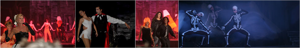 The Fourth Scary Saturday Night Out was held at the Manatee Convention and Civic Center in Ellenton, Florida on October 23, 2004. Using the entire arena and playing to an audience of 950, Allison Norton's Bradenton Ballet Repertory brought ghosts, bats, zombies, cats, and Dracula to life on stage. Singers Chadwick, Laurie Fetzer and Jardina Campbell teamed up with musician Dennis Clove and a group of sexy Ghouls that just wanted to have fun! The audience was thrilled with a giant dancing spider and a stage full of two-stepping skeletons.